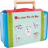 Set je navržen pro realistické hraní na zubaře: obsahuje látkovou roušku a čepici, model zubů, zubní kartáček, pastu, zubní zrcátko a další dřevěné nástroje. Děti si nacvičí správné návyky dentální hygieny, rozvíjí jemnou motoriku, představivost a sociální dovednosti při hře s kamarády.