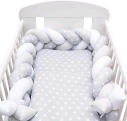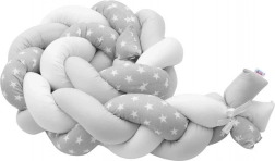 Pletený mantinel do postýlky cop šedo‑bílý Hvězdičky NEW BABY