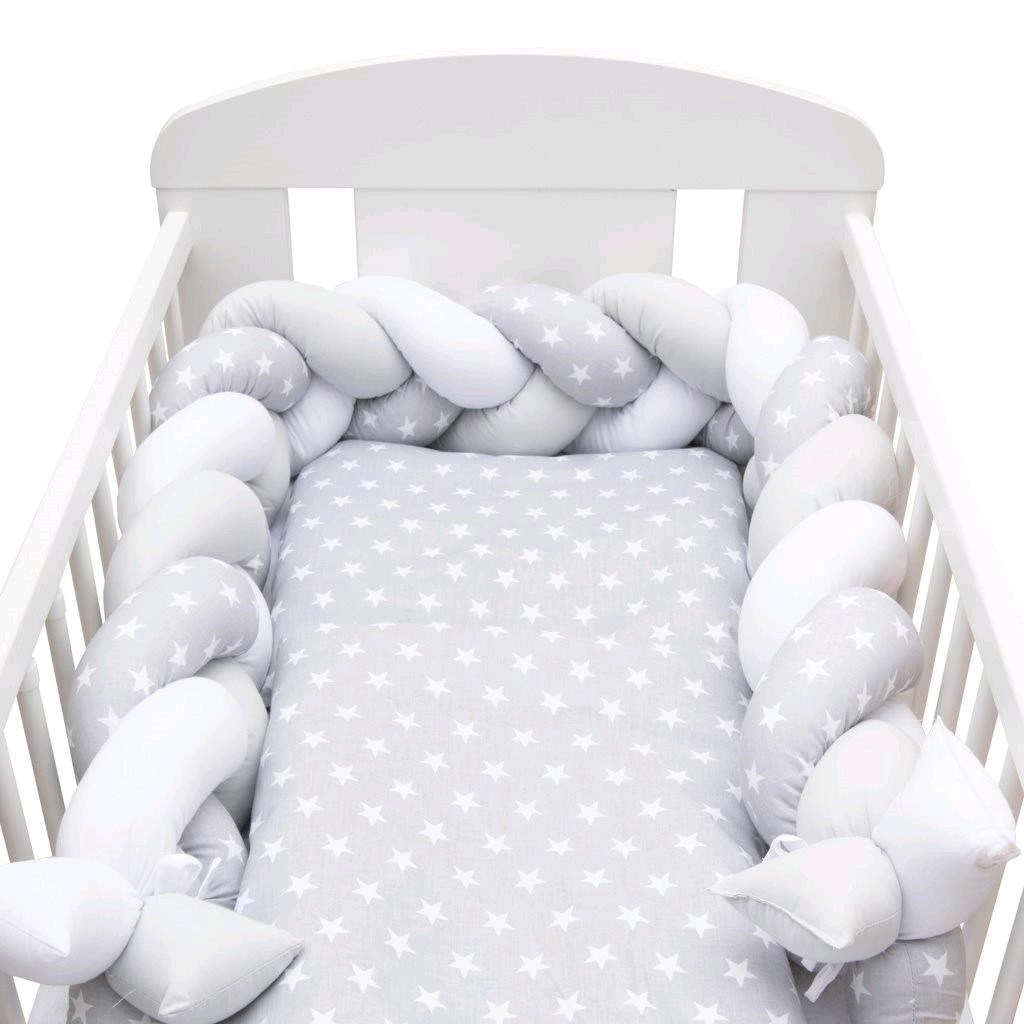Hustě vyplněný pletený cop tlumí nárazy, brání prostrčení ručiček mezi příčky a pomáhá vytvářet klidnou, útulnou zónu pro spánek.
