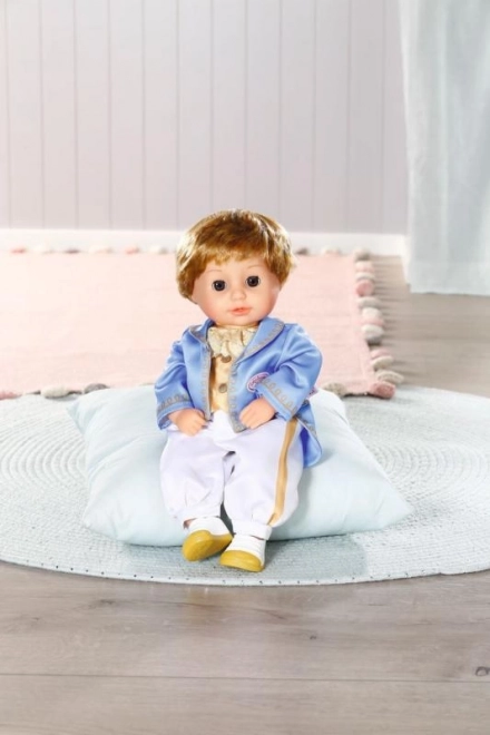Roztomilý princ z kolekce Baby Annabell o velikosti 36 cm je ideální první panenkou pro děti od 1 roku. Má měkké látkové tělíčko, mrkací oči a outfit ve střihu easy fit pro snadné převlékání. Stylový královsky modrý kabátek se zlatou vestou, bílé kalhoty se zlatým proužkem a zlatobílé botičky podporují fantazii a rolové hry.