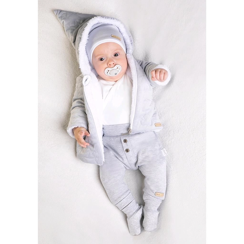 Stylový a hřejivý zimní set pro miminka – kabátek s kapucí a čepička od značky Nicol. Kabátek je z hebkého materiálu Velvet a podšitý měkoučkým Wellsoftem pro maximální komfort a teplo. Prodloužený zadní díl, ohrnovací rukávky a zapínání na zip po celé délce usnadní oblékání i péči. Čepička z jemné bavlny je příjemná k citlivé dětské pokožce.