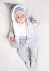 Praktické zapínání na zip po celé délce usnadní oblékání bez zbytečného převlékání přes hlavičku. Součástí je pohodlná bavlněná čepička, která jemně obejme hlavu a doplní celý outfit do chladného počasí.