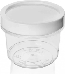 Spolehlivý a univerzální kulatý pojemník o objemu 300 ml s bílým víčkem a průhledným tělem, které umožní snadno zkontrolovat obsah bez otevírání. Díky kvalitnímu těsnění je box výjimečně těsný a udrží vaše jídlo déle čerstvé – bez rizika vytečení při přenášení.