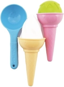 Tato hravá sada na písek umožní dětem připravovat "zmrzlinové" dobroty pro kamarády i rodinu. Díky lehkým a příjemně barevným dílům se děti naučí spolupracovat, rozvíjet jemnou motoriku a užijí si spoustu zábavy při rolových hrách jako kavárna, restaurace nebo obchod.