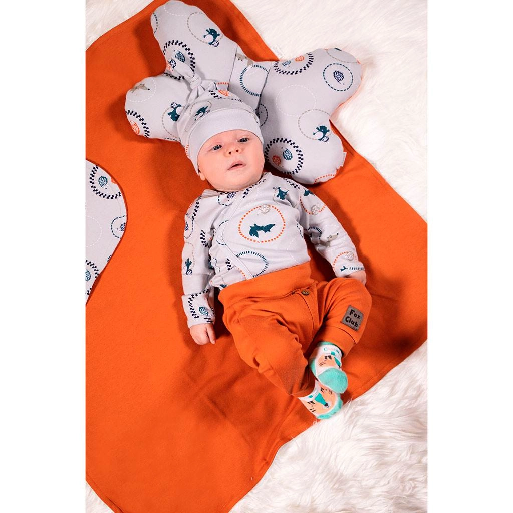 Široký, pružný lem netlačí a drží čepičku bezpečně na místě, zatímco roztomilý uzlík a potisk lišek dodávají hravý vzhled. Skvěle se hodí na každodenní nošení, do kočárku i do postýlky.