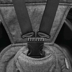 Tříbodové bezpečnostní pásy, odnímatelná hrazda a nožní brzdy na zadních kolech udrží malého jezdce v bezpečí. Stříška s okénkem umožní rodiči mít dítě stále na očích.