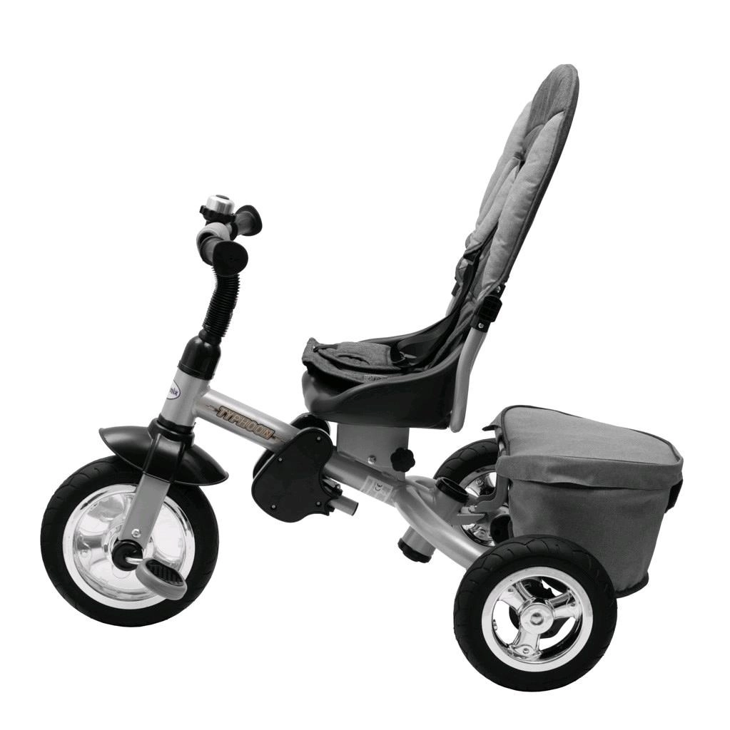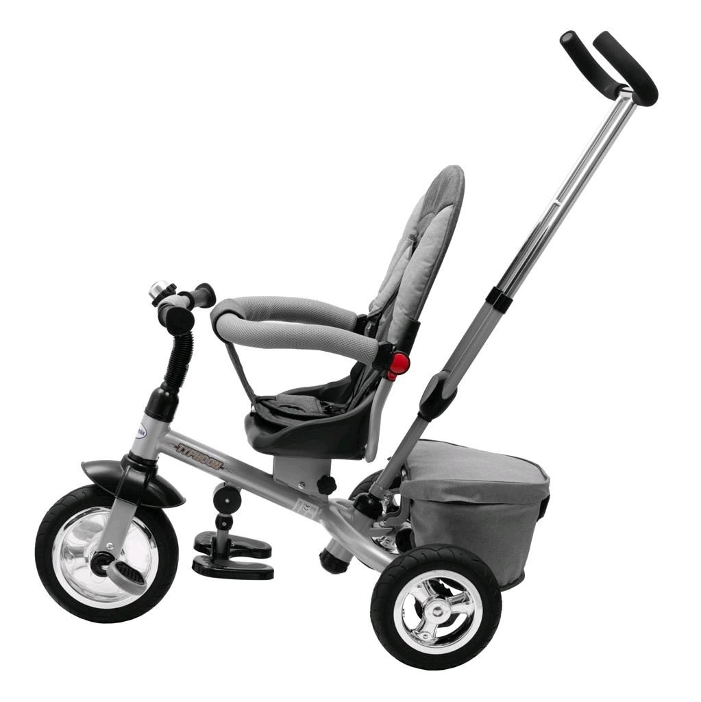 Multifunkční dětská tříkolka 3v1 BABY MIX Typhoon roste s dítětem od 1,5 do 5 let. Nabízí otočné sedadlo 360°, ovládání rodičem i dítětem, bezúdržbová gumová kola a pevný ocelový rám. Díky vodicí tyči, stříšce s okénkem a tříbodovým pásům zajišťuje bezpečnou a pohodlnou jízdu v jakémkoli terénu.