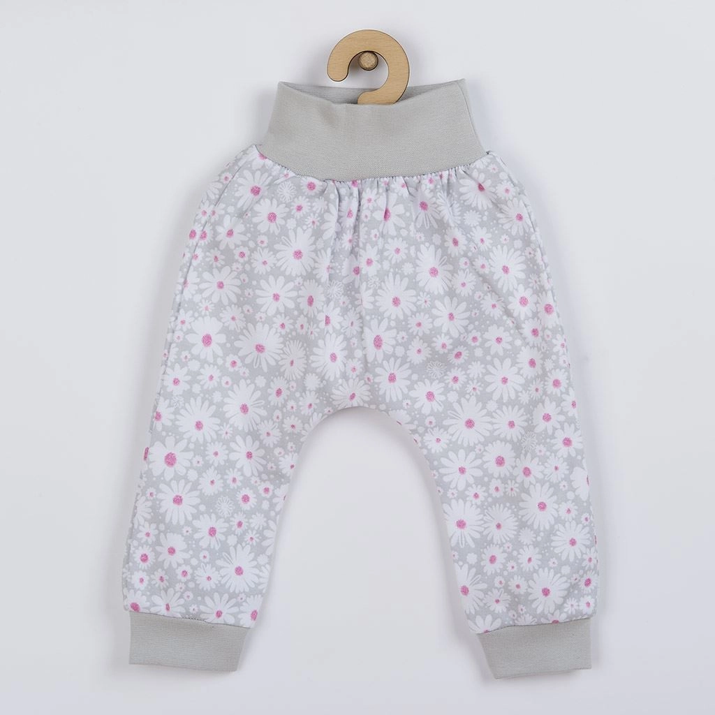 Tato 2dílná soupravička je ideální na doma i na vycházky. Tričko má praktické zapínání na cvoček u krčku na zadní straně pro snadné oblékání a zdobí ho stylové volánkové rukávky. Tepláčky mají širší pohodlný lem, zúžené nohavice s lemem a celoplošný květinový vzor, který dodává soupravě jemný a hravý vzhled.