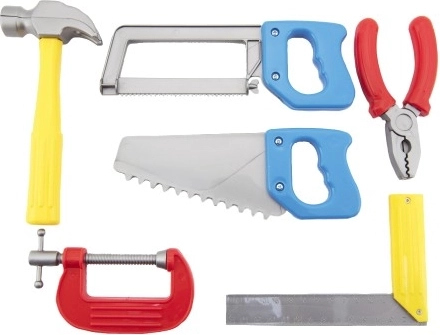 Tato dětská sada nářadí je ideální pro malé kutily, kteří se chtějí učit a napodobovat práci dospělých řemeslníků. Pestrobarevný set obsahuje kladivo, kleště, pilku na kov, svěrák, pilku na dřevo a úhelník, což jsou vše základní nářadí pro každého malého mistra. Děti se mohou hravou formou naučit základům manuálních dovedností a rozvíjet svou fantazii a kreativitu.