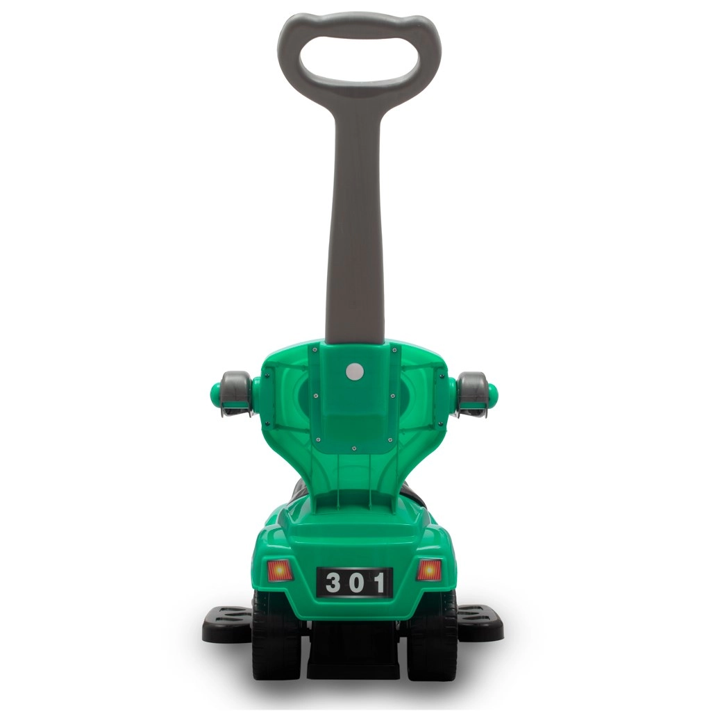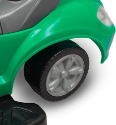 Multifunkční odrážedlo 3v1 BABY MIX Mega Car v zelené barvě spojuje odrážedlo, jezdítko a chodítko v jednom. Nabízí vodicí rukojeť pro rodiče, boční bezpečnostní chrániče, odnímatelné stupačky a hudební volant s klaksonem. Díky stabilní konstrukci a úložnému prostoru pod sedadlem je ideální pro děti od 12 do 36 měsíců.