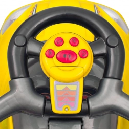 Interaktivní volant s hudebním panelem a klaksonem podporuje rozvoj motoriky a učí dítě vnímat souvislost mezi pohybem a zvukem. Široká kola a pevné zpracování poskytují jistotu na každém povrchu a úložný prostor pod sedadlem pojme drobné hračky na cesty.