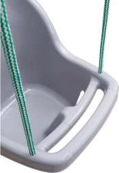 Tato šedá závěsná houpačka nabízí dětem bezpečné a pohodlné houpání díky vysokému opěradlu a přednímu bezpečnostnímu dílu. Konstrukce z kvalitního plastu je odolná vůči počasí, snadno se čistí a dlouhodobě si zachovává barvu. Díky délkově nastavitelným lanům ji snadno přizpůsobíte různým výškám zavěšení v interiéru i exteriéru.