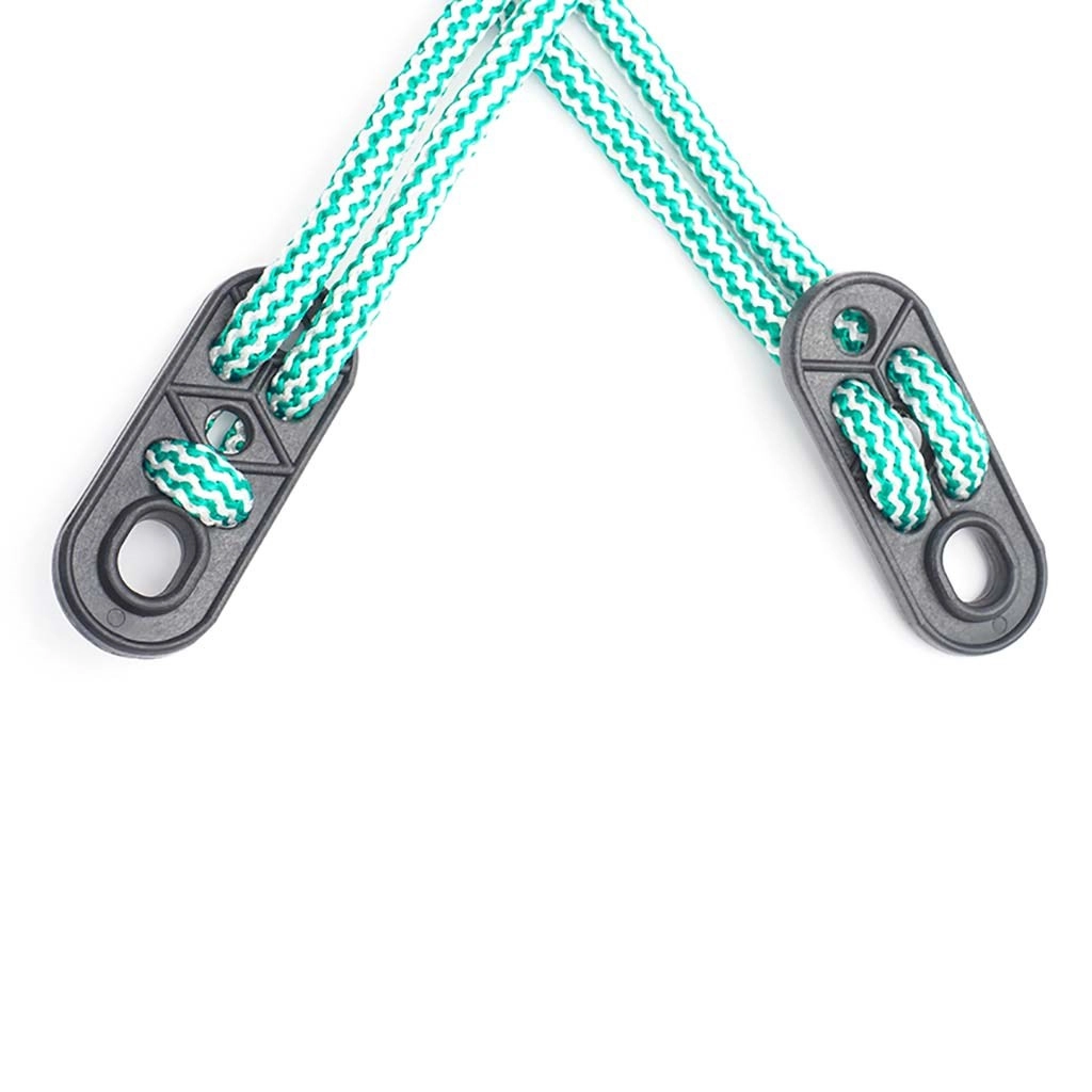 Certifikovaná lana s plastovými regulátory umožňují rychle nastavit ideální výšku houpačky podle místa zavěšení.