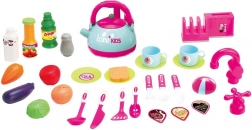 Součástí je bohaté příslušenství pro ještě zábavnější hru – od nádobí a příborů až po potraviny, jako je kečup, mléko či zelenina. Kuchyňka je vyrobena z odolného plastu a je ideální pro každodenní hraní doma i ve školkách.