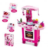 Tato růžová dětská kuchyňka BABY MIX přináší dětem autentický zážitek z vaření. Hořák se světelnými efekty a zvuky, otočné knoflíky i otevírací trouba podporují představivost a rozvíjejí jemnou motoriku. Díky praktickým poličkám, digestoři s háčky a odkapávači na talíře mají děti vše hezky po ruce.