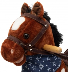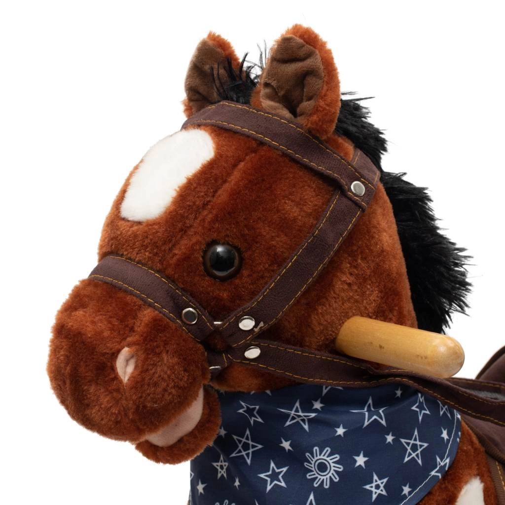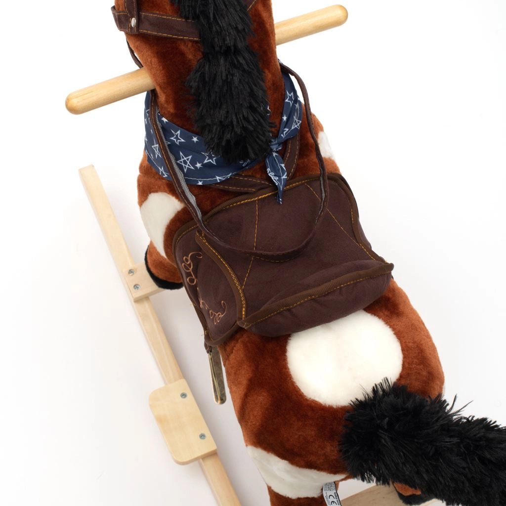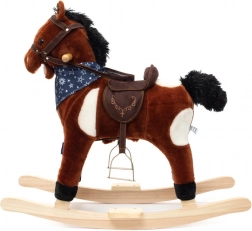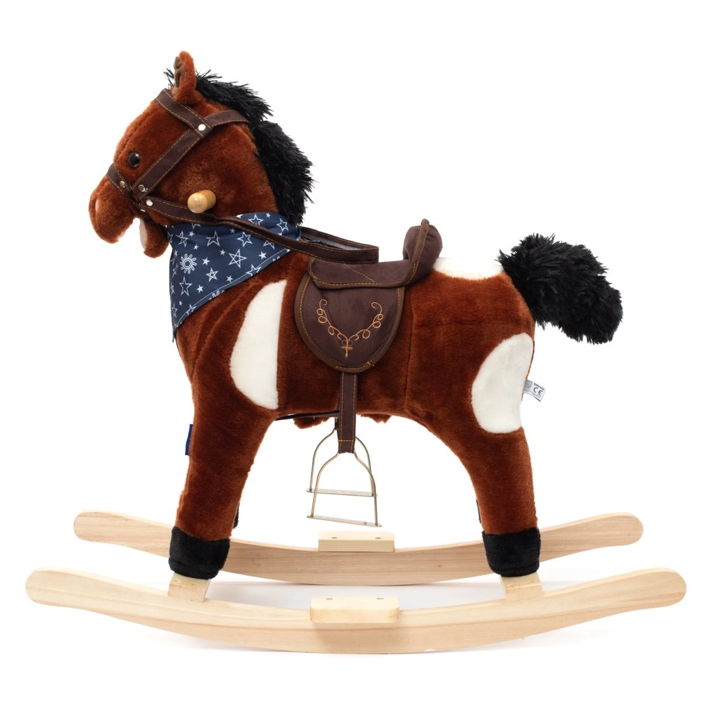 Po stisknutí tlačítek na ouškách koník řehtá, vydává zvuky cvalu, zpívá kovbojskou písničku a zároveň hýbe tlamičkou a ocáskem. Během houpání se děti učí lépe koordinovat pohyby a zlepšují celkovou rovnováhu a jemnou i hrubou motoriku. Dřevěné lišty i rukojeti lze snadno odšroubovat pro praktičtější skladování.