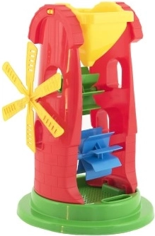 Podpořte kreativitu vašich dětí s tímto živě barevným mlýnkem na písek a vodu. Tento funkční mlýnek umožňuje sypat písek nebo nalévat vodu do horní části a pozorovat, jak se roztočí kolečka, což je pro děti ohromná zábava.
