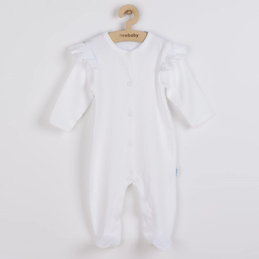 Overal NEW BABY Practical je navržen pro každodenní pohodlí miminka. Jemná a kvalitní bavlna je prodyšná, nedráždí pokožku a díky promyšlenému střihu zůstávají záda miminka při každém pohybu zakrytá. Moderní proužkovaný vzor a neutrální bílá barva v provedení pro holčičky skvěle zapadne do šatníku novorozenců i větších kojenců.