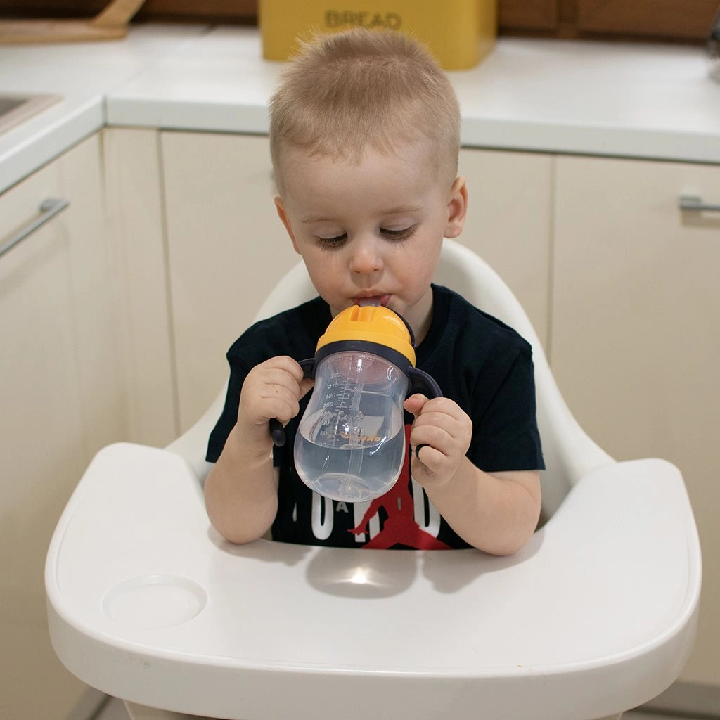 Láhev je lehká, odolná a vhodná pro děti od 9 měsíců. Je vyrobena z bezpečného materiálu PP, lze ji mýt v myčce (horní koš, bez slámky) a používat v mikrovlnné troubě. Ergonomické držení a praktický objem 280 ml z ní dělají ideálního parťáka na každý den.