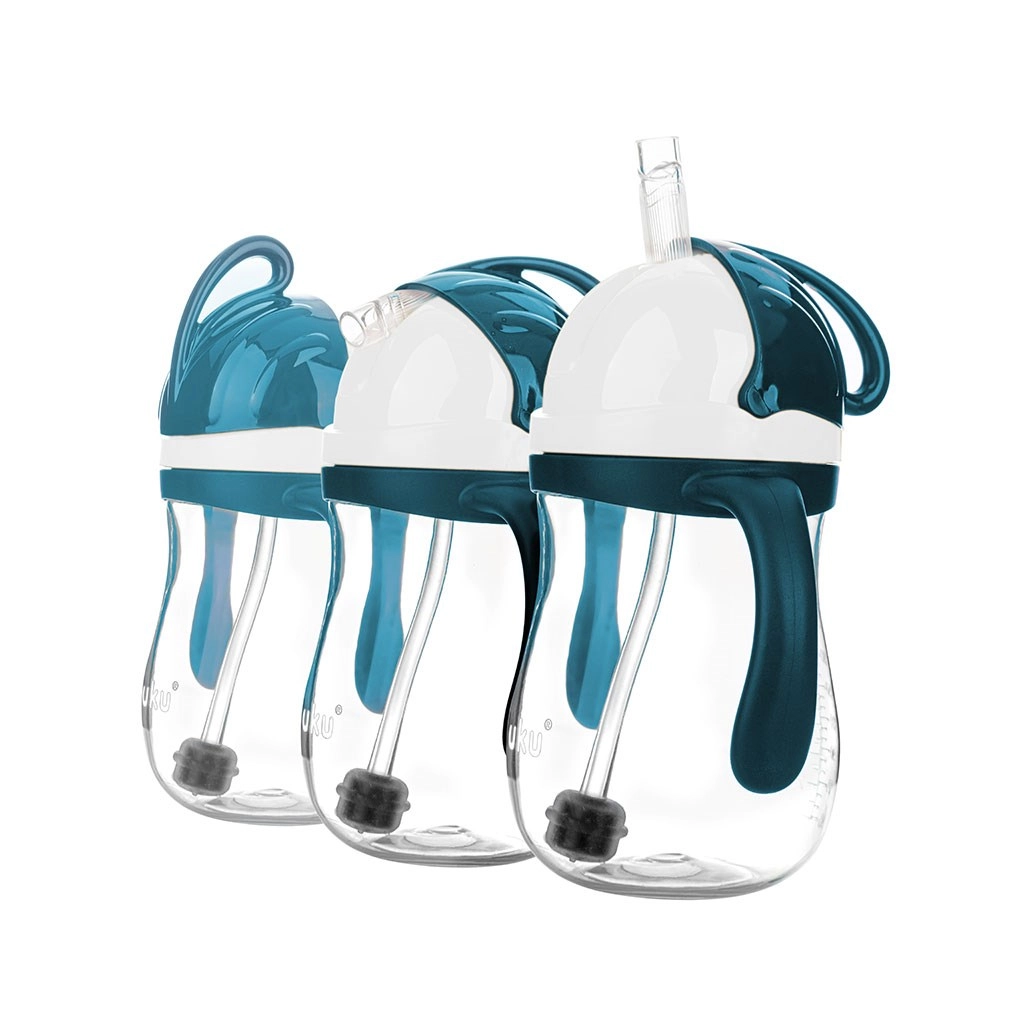 Silikonové brčko se závažím sleduje hladinu nápoje, takže dítě pohodlně pije i při naklonění nebo otočení láhve.