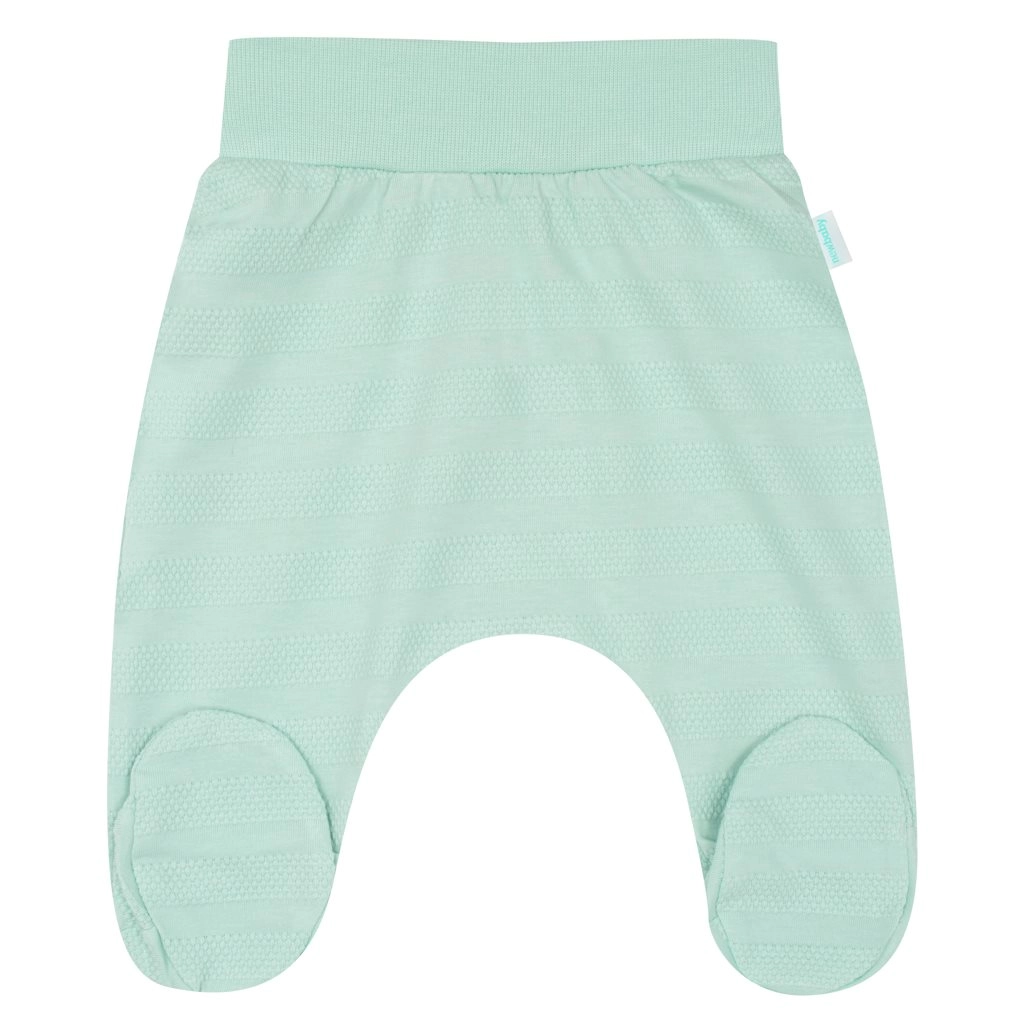 Širší pružný lem netlačí na bříško a drží pohodlně na místě. Integrované botičky udrží nožičky miminka v teple.
