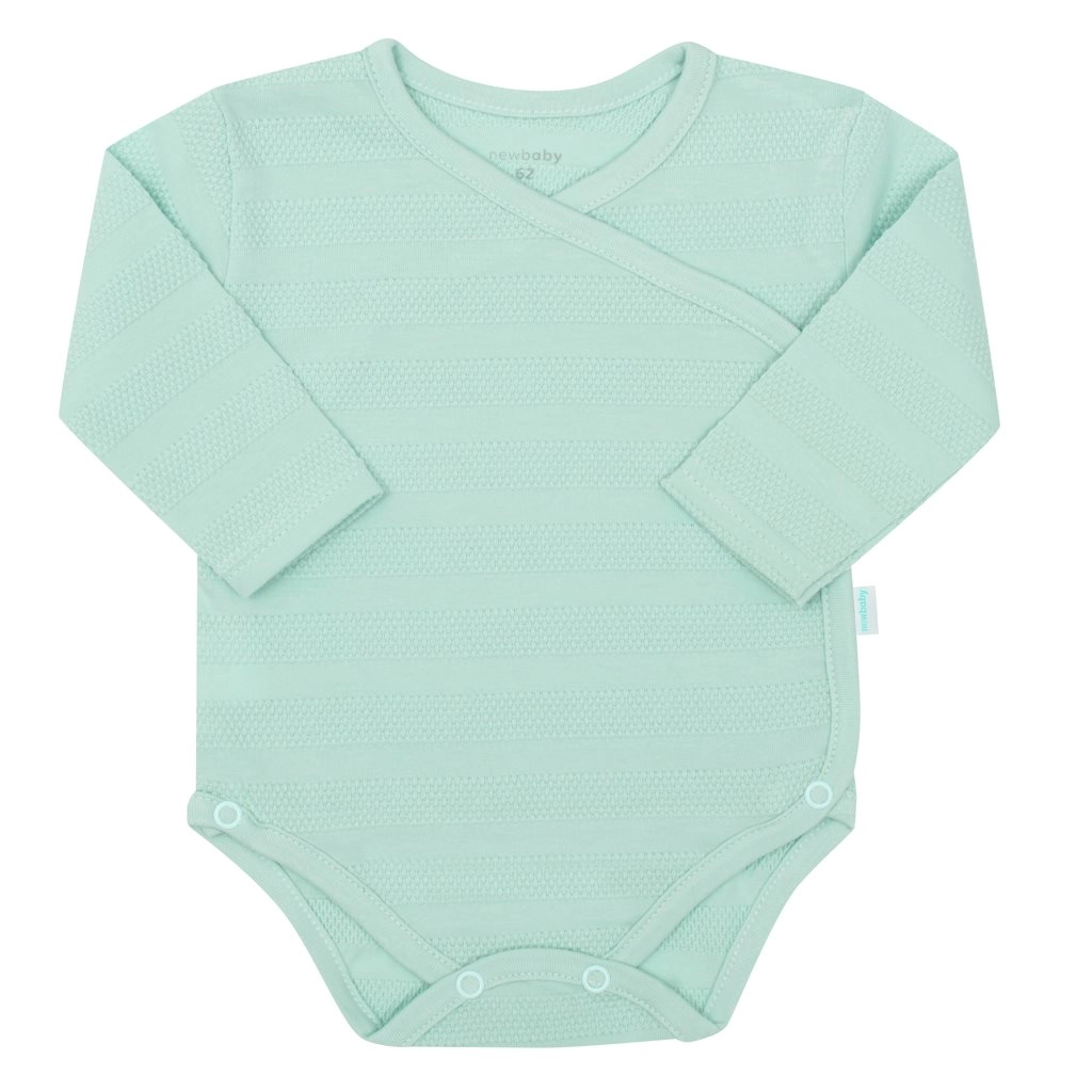 Dlouhý rukáv a boční zapínání po celé délce na cvočky umožní rychlé a šetrné převlékání i přebalování novorozence.