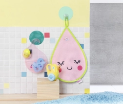 Růžový ručník ve tvaru kapky s usměvavou tváří poskytuje jemnou texturu pro zábavu a pocit pohodlí vašeho dítěte během hry.