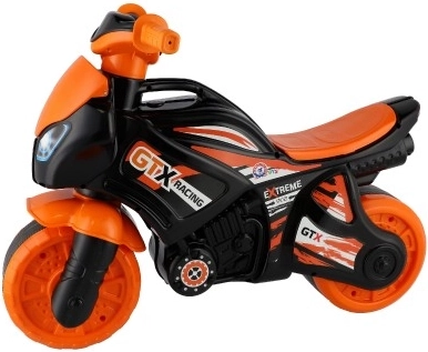 Dětské odrážedlo motorka ve sportovním designu potěší všechny malé milovníky rychlé jízdy. Díky odolné plastové konstrukci je ideální pro zábavné a bezpečné hraní. Design je převážně oranžovo-černý s logy GTX Racing, které dodávají pocit skutečné závodní motorky.