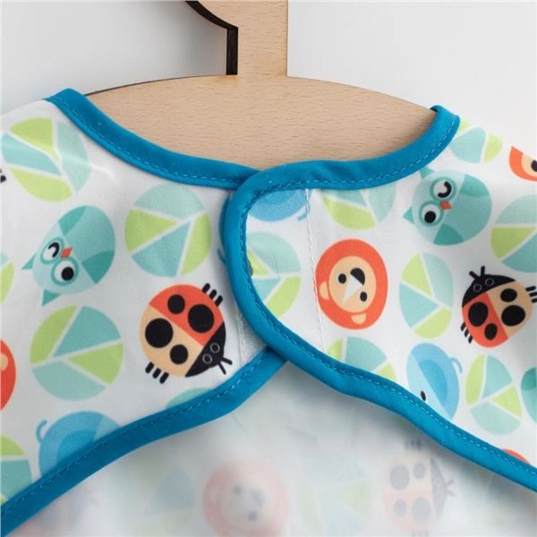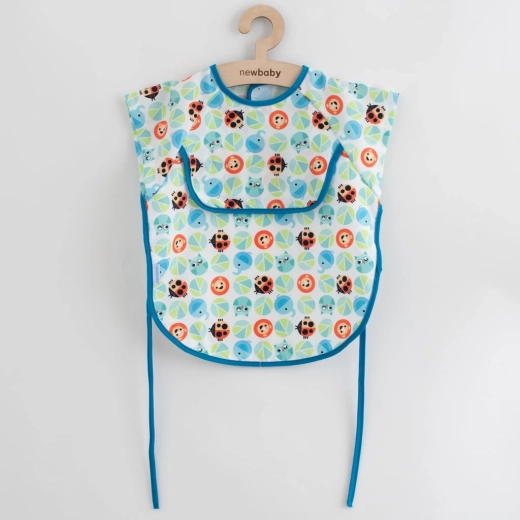 Praktický kojenecký bryndák–zástěra od značky NEW BABY účinně chrání oblečení dítěte při jídle i hraní. Je vyroben z měkkého a lehkého materiálu, má pohodlné zapínání na suchý zip a praktickou kapsu na zachycení drobků. Díky dvouvrstvému provedení se nepromokavou spodní vrstvou zůstane oblečení čisté a v suchu.