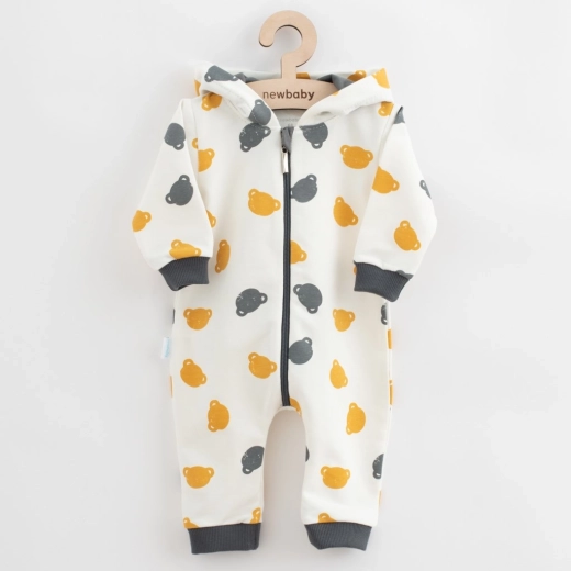 Design s roztomilými medvídky a kapucí s barevnou podšívkou a bambulí dodává oblečku hravý vzhled. Pružné lemy na rukávech a nohavicích lépe drží tvar a chrání před chladem, takže je overal vhodný na celý rok.