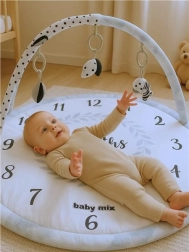 Kulatá deka s motivem měsíců 1–12 je stvořená pro milníkové fotografie – jednoduše zaznamenáte růst svého miminka každý měsíc. Měkký materiál poskytuje komfortní oporu při ležení na bříšku i na zádech a podporuje rozvoj jemné motoriky a koordinace ruka–oko.