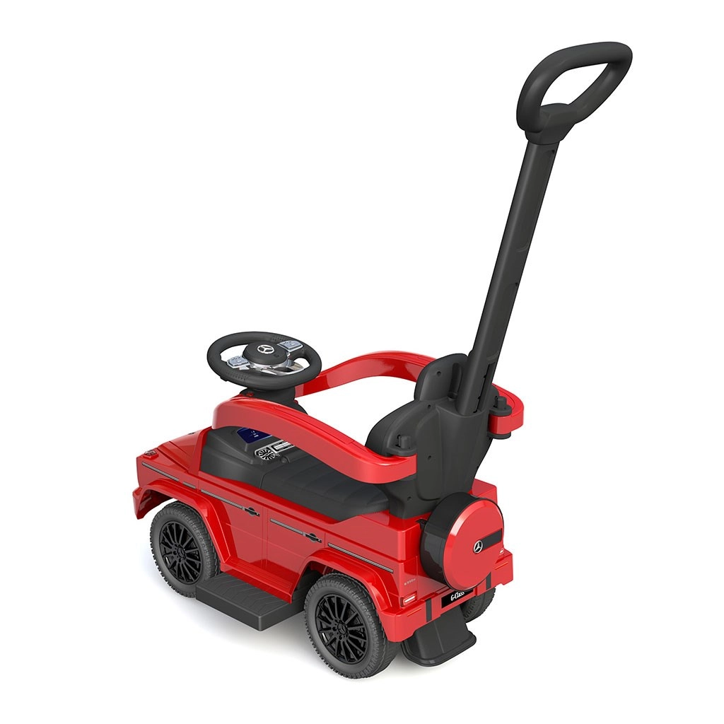 Odrážedlo MERCEDES-BENZ G-Class Baby Mix vyniká realistickým designem, kvalitním plastovým zpracováním a praktickými prvky pro pohodlné i bezpečné ježdění. Díky odnímatelné vodicí tyči, bočním opěrkám rukou a podnožkám ho mohou rodiče snadno ovládat, a jakmile dítě zesílí, lze z něj udělat klasické odrážedlo.