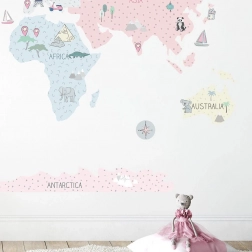 Růžová mapa světa ve velikosti L je elegantní a zároveň praktická nástěnná dekorace do dětského pokoje. Tlumené pastelové barvy se skvěle hodí do moderních interiérů a podporují příjemnou atmosféru pro hraní i učení. Děti se přirozeně seznamují s kontinenty, oceány, světovými stranami i známými památkami.