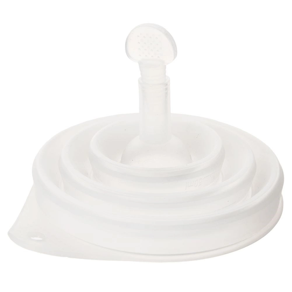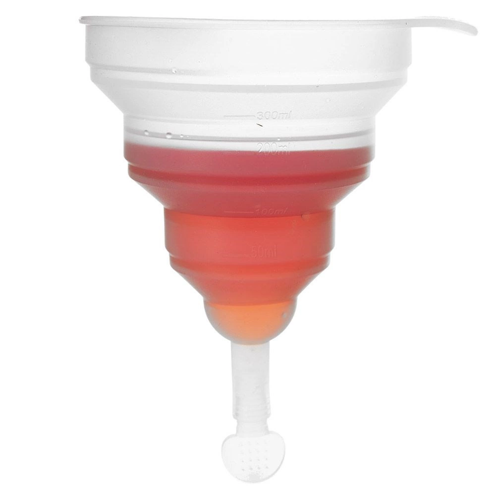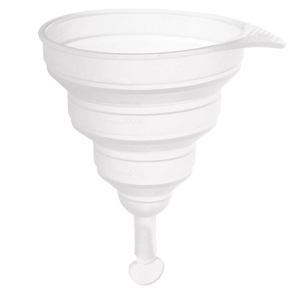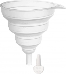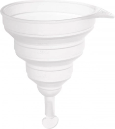 Skládací trychtýř je nepostradatelný pomocník do každé kuchyně. Díky silikonovému provedení je lehce skladný, stabilní a při správném používání vydrží dlouhá léta. Integrovaná měrná stupnice 50–300 ml ulehčí přesné odměřování tekutin i sypkých surovin.