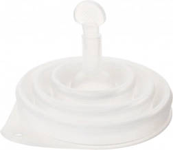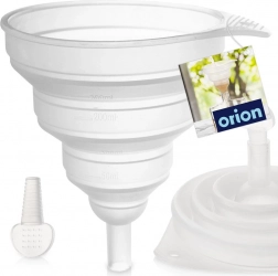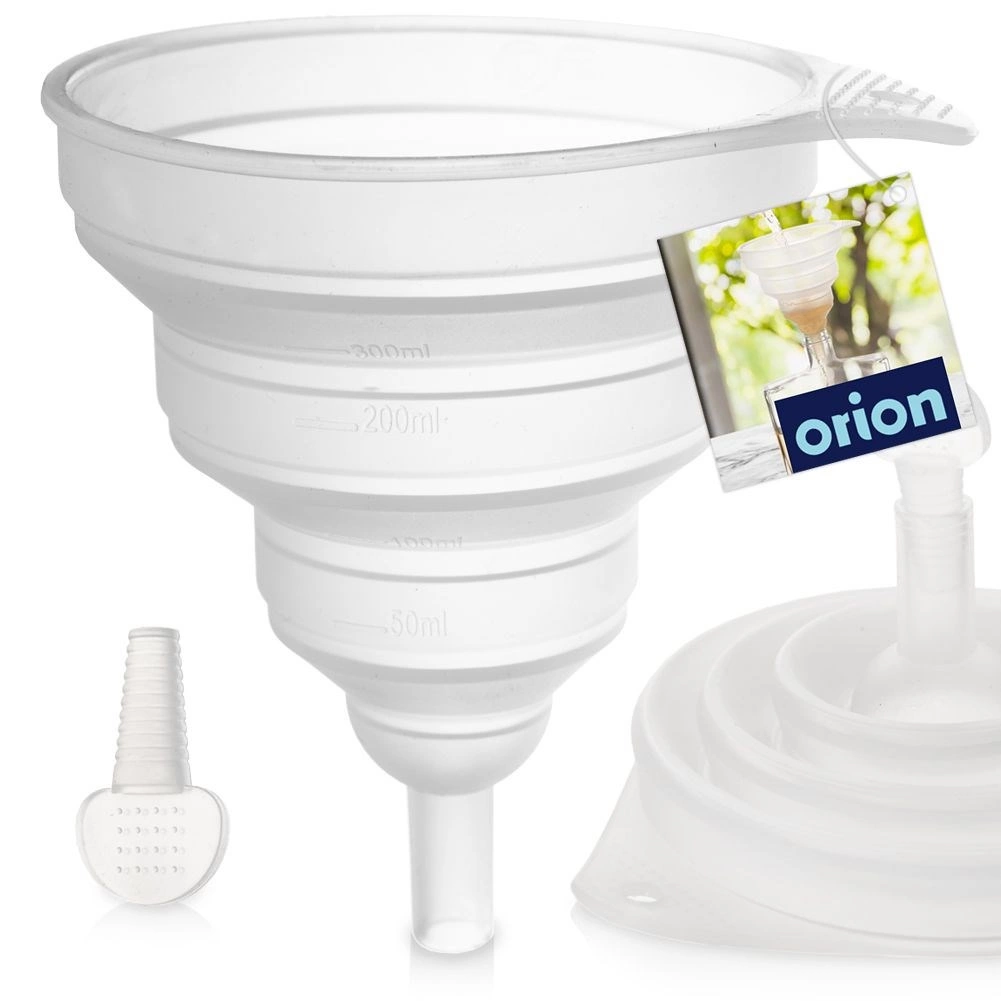 Praktický skládací kuchyňský trychtýř o průměru 12 cm a výšce 17 cm se zátkou a integrovanou měrkou. Vyroben z odolného silikonu, šetří místo v zásuvce a je vhodný k plnění lahví a nádob. Odolá teplotám do 100 °C a lze jej mýt v myčce (bez zátky). Ideální na přelévání šťáv, likérů, vína či piva a přesné odměřování 50–300 ml. Odolný materiál, skládací konstrukce, měrná stupnice, snadná údržba.