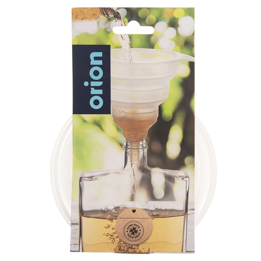 Trychtýř je vhodný pro plnění lahví a nádob, snadno s ním přelijete šťávy, likéry, víno, pivo i další tekutiny. Je teplotně odolný do 100 °C, takže zvládne i horké tekutiny. Praktické očko umožňuje zavěšení na kuchyňský reling a zátka pomůže při dočasném uzavření.