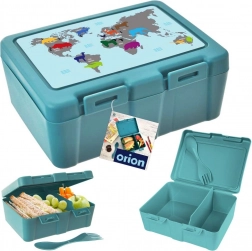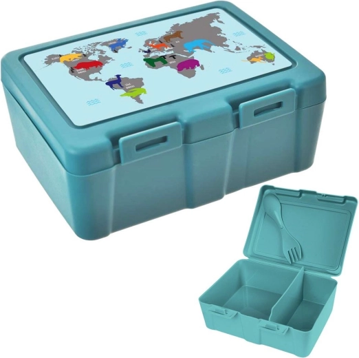 Snídaňový box se světem 1 l, 2 přihrádky a 2v1 příbor