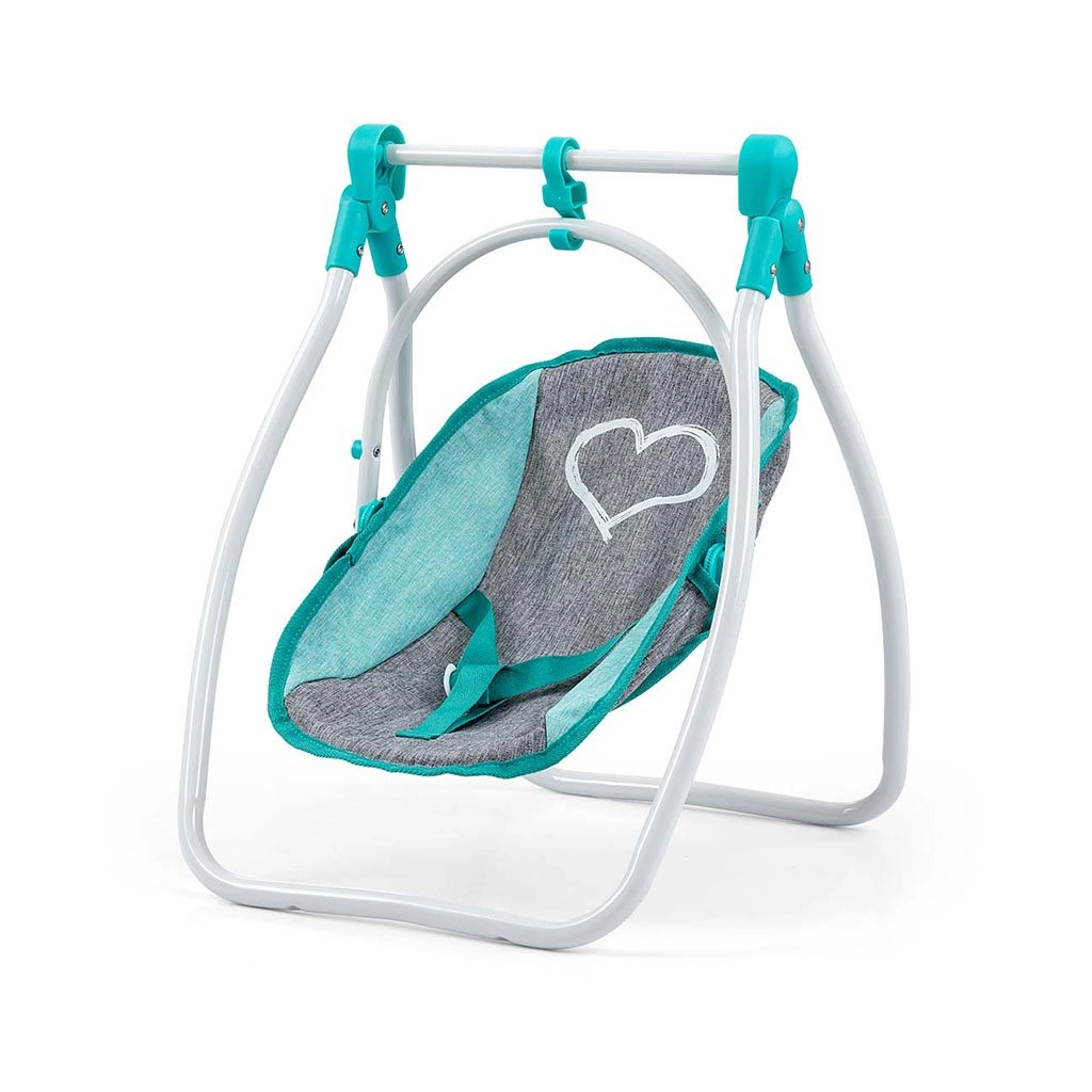 Bezpečná houpačka se stabilní A-konstrukcí a pohodlným látkovým sedákem zaručí spoustu zábavy při péči o panenku.