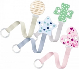 Speciálně tvarovaný klip se snadno otevírá a zavírá jednou rukou a je šetrný k oblečení i pokožce miminka.