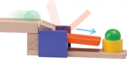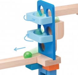 Základ dráhy je z masivního dřeva s plastovými komponenty, které nabízejí hladkou povrchovou úpravu a atraktivní barevnost.