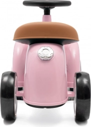 Stylové dětské odrážedlo v retro designu zaujme elegantní růžovou barvou a promyšlenými detaily. Díky lehké konstrukci, měkkým EVA kolečkům a ergonomickému sedlu je ideální pro první krůčky mobility. Volant s klaksonem a úložný prostor pod sedlem zaručí zábavu i praktičnost, zatímco omezené natáčení volantu pomáhá zvýšit stabilitu a bezpečí při jízdě doma i venku.