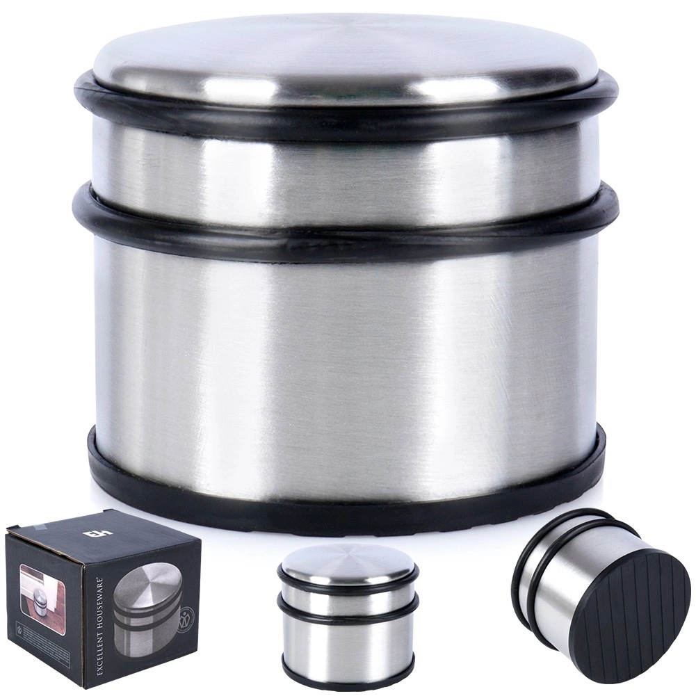 Robustní zarážka na dveře s moderním nerezovým vzhledem zajistí, že dveře nebudou samovolně dovírat nebo narážet do stěn a nábytku. Masivní konstrukce a protiskluzová gumová základna zaručují stabilitu na většině typů podlah.