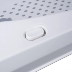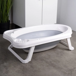 Bezpečnost při koupání zajišťují rozkládací nohy se zajištěním proti samovolnému složení a protiskluzové plochy pro jistotu i na hladkém povrchu. Odtokový špunt umožňuje rychlé a pohodlné vypuštění vody přímo do vany či umyvadla.