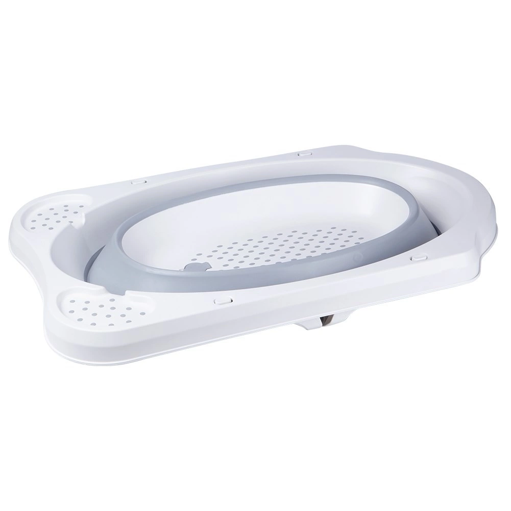 Praktická skládací dětská vanička o objemu 33 litrů šetří místo, je stabilní a bezpečná díky rozkládacím nohám se zámkem a antiskluzovým podložkám. Snadné vypouštění zajišťuje odtokový špunt, skladování i přenášení usnadní ploché složení.