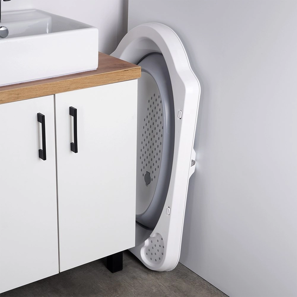 Tato skládací vanička je vyrobena z odolné termoplastické gumy a kvalitního plastu, takže je pevná, stabilní a dlouhodobě spolehlivá. Díky chytrému mechanismu ji během chvilky rozložíte i složíte na placku a uložíte do úzké mezery v koupelně.