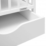 Praktická a bezpečná dětská postýlka NEW BABY Basic v bílé barvě kombinuje kvalitní borovicové dřevo, moderní design a chytré úložné řešení. Nabízí 3 výškové úrovně roštu, 3 vyjímatelné příčky a prostorný šuplík na kuličkových pojezdech. Certifikace EN 716 zajišťuje bezpečné používání a odvětrávaný rošt podporuje cirkulaci vzduchu a dlouhou životnost matrace.
