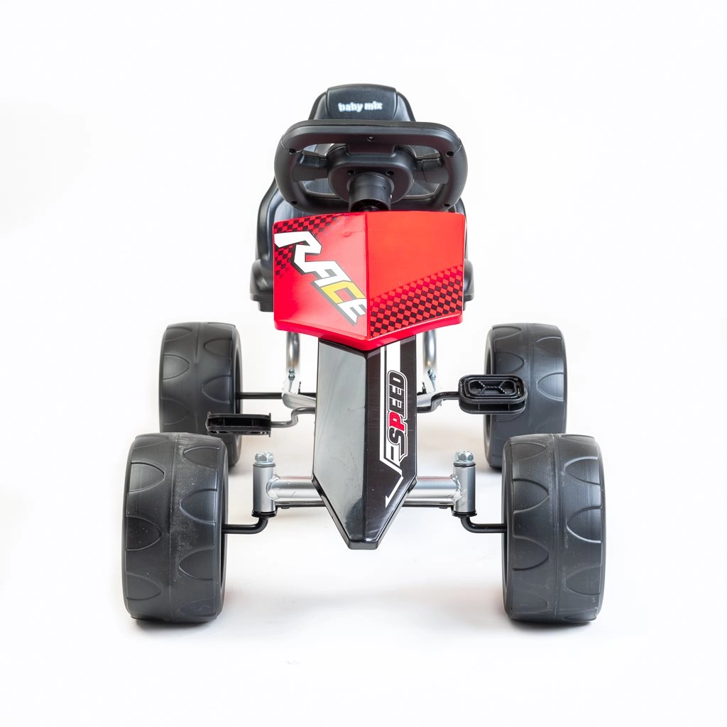 Motokára Baby Mix Speedy je skvělou volbou pro aktivní děti, které milují pohyb na čerstvém vzduchu. Pevná kovová konstrukce s odolnými plastovými prvky, sportovní volant a kryt řetězu zvyšují bezpečnost i komfort. Hra s motokárou rozvíjí koordinaci pohybů, fantazii a samostatnost.