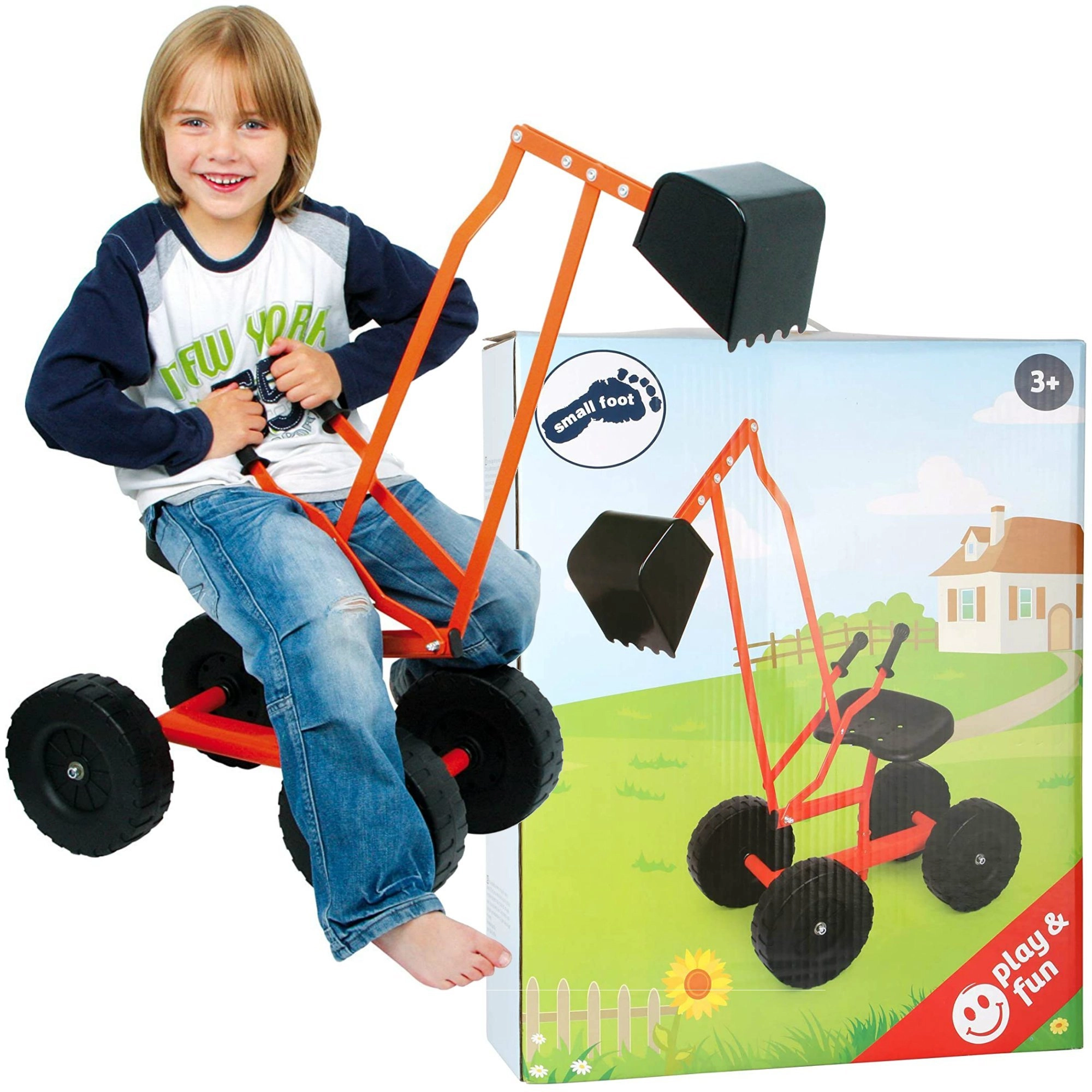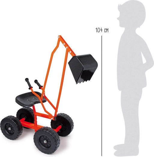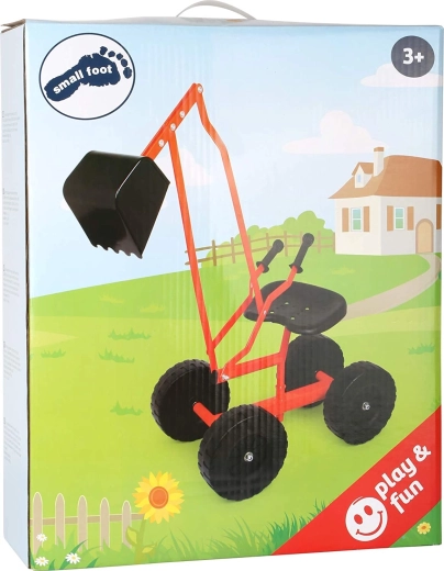 Robustní dětský bagr od značky Small Foot pro venkovní zábavu v písku i na zahradě. Nabízí kovový rám, velká kola pro stabilitu, otočnou lopatu 360° a pohodlné sedátko s pákovým ovládáním ramene.