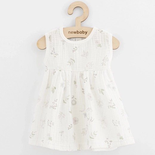 Stylové a jemné šatičky New Baby Zoe byly navrženy pro malé parádnice, které potřebují pohodlí i v těch nejteplejších dnech. Díky lehké a vzdušné struktuře mušelínu jsou šaty výjimečně prodyšné a pomáhají předcházet přehřátí. A‑střih bez rukávů a nařasená sukýnka poskytují svobodu pohybu a roztomilý vzhled.