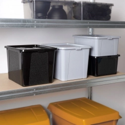 Multifunkční úložný box s víkem vám usnadní organizaci oblečení, hraček, textilií, dokumentů i kuchyňských či dílenských doplňků. Zacvakávací víko udrží věci čisté a chráněné, zatímco lehká a přitom pevná plastová konstrukce zaručí dlouhou životnost a snadnou údržbu.